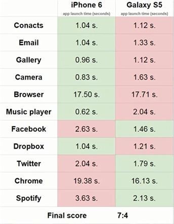 ¿ì¼± ²¨Áø »óÅ¿¡¼­ µ¿½Ã¿¡ Àü¿ø¹öÅÏÀ» ´­·¶À» ¶§´Â °¶·°½ÃS5°¡ ¾ÆÀÌÆù6º¸´Ù ¾à°£ »¡¸® ÄÑÁ³´Ù. À̾ ±âº»À¸·Î žÀçµÈ ÀüÈ­¹øÈ£ºÎ ¾ÛÀ» ±¸µ¿ÇÏ´Â ½ÇÇè¿¡¼­´Â ¾ÆÀÌÆùÀÌ ºü¸¥ °ÍÀ¸·Î ³ªÅ¸³µ´Ù. ù ¹øÂ°·Î ½ÃµµÇßÀ» ¶§´Â ¾ÆÀÌÆù 1.04ÃÊ, °¶·°½Ã 1.12Ãʰ¡ °É·È°í ¸Þ¸ð¸®¿¡ ·ÎµùµÈ ÈÄ ÁøÇàµÈ µÎ¹øÂ° ½ÇÇè¿¡¼­´Â ¾ÆÀÌÆù 0.67ÃÊ, °¶·°½Ã 0.83Ãʰ¡ ¼Ò¿äµÆ´Ù.