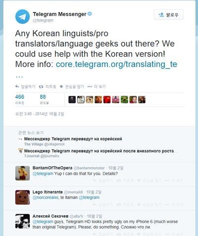 ÅÚ·¹±×·¥Àº Áö³ 2ÀÏ(ÇöÁö½Ã°£) °ø½Ä Æ®À§Å͸¦ ÅëÇØ Çѱ¹¾î ¹ø¿ª Àü¹®°¡¸¦ ¸ðÁýÇÑ´Ù°í ¹àÇû´Ù. ¶Ç ȸ»ç ÃøÀº ÅÚ·¹±×·¥ ÇÑ±Û ¹öÀüÀ» À§ÇÑ µµ¿òÀÌ ÇÊ¿äÇÏ´Ù°í °ÔÀçÇß´Ù.
