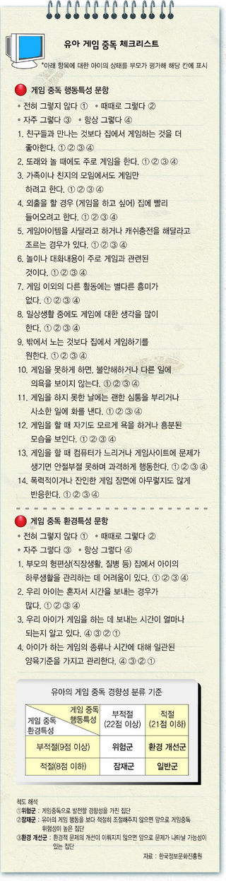 Á¶±â ÀÎÅÍ³Ý ÀÌ¿ëÀÇ ¹®Á¦=¾ÆÀ̵éÀÌ ÀÎÅͳÝÀ» ÅëÇØ ÇÏ´Â °ÍÀº ´ëºÎºÐ °ÔÀÓÀÌ´Ù. ¹®Á¦´Â ÄÄÇ»ÅÍ °ÔÀÓÀÌ ¾ÆÀ̵éÀÌ °æÇèÇÏ´Â ±× ¾î¶² °Íº¸´Ù ÀÚ±ØÀûÀ̶ó´Â Á¡ÀÌ´Ù. ±Ç ¼ÒÀåÀº ¡°¾î¸± ÀûºÎÅÍ ±×·± °­ÇÑ Àڱؿ¡ Àͼ÷ÇØÁö´Ù º¸¸é ¾ÆÀ̵éÀº ´Ù¸¥ °÷¿¡¼­µµ ±×¸¸Å­ÀÇ ÀÚ±ØÀÌ ÁÖ¾îÁöÁö ¾ÊÀ¸¸é ´Ü 5ºÐµµ ÁýÁßÇÏÁö ¸øÇÏ°í »ê¸¸ÇØÁö±â ½±´Ù¡±°í ¸»Çß´Ù. ´õ Å« ¹®Á¦´Â Àڱؿ¡ ´ëÇÑ ³»¼ºÀÌ ±æ·¯Á® ½Ã°£ÀÌ °¥¼ö·Ï ´õ °­ÇÑ ÀÚ±ØÀ» ã°Ô µÈ´Ù´Â Á¡ÀÌ´Ù. ±Ç ¼ÒÀåÀº ¡°¸¹Àº ºÎ¸ðµéÀÌ ¾ÆÀ̰¡ Æ÷ÅÐ »çÀÌÆ®ÀÇ ¾î¸°ÀÌ Àü¿ë »çÀÌÆ®¿¡¼­ Ç÷¡½Ã °ÔÀÓÀ» Çϰí ÀÖÀ¸¸é ¡®¾êµé °ÔÀÓÀε¥ ¹¹ ¾î¶§¡¯ ÇÏ¸ç ´ë¼ö·ÓÁö ¾Ê°Ô ¿©±â°ï Çϴµ¥, ÀÌ´Â ¸Å¿ì À§ÇèÇÑ »ý°¢¡±À̶ó°í ¸»Çß´Ù. °°Àº °ÔÀÓÀ» °è¼Ó ¹Ýº¹ÇÏ´Ù º¸¸é °ð ½Ã½ÃÇØÁ®¼­ ´õ °­ÇÑ ÀÚ±ØÀ» ÁÖ´Â °ÔÀÓÀ» ã°Ô µÇ±â ¶§¹®ÀÌ´Ù. óÀ½¿¡´Â ¸·´ë±â·Î ´ÞÆØÀÌ Àâ´Â °ÔÀÓÀ¸·Î ½ÃÀÛÇÏÁö¸¸, Á¡Â÷ ¸·´ë±â°¡ Ä®·Î ¹Ù²î°í, ´õ ³ª¾Æ°¡ »ç¶÷À» ÇâÇØ ÃÑÀ» ½î°í Çǰ¡ Æ¢´Â °ÔÀÓÀ¸·Î ¿Å°Ü°¡°Ô µÈ´Ù´Â °ÍÀÌ´Ù.