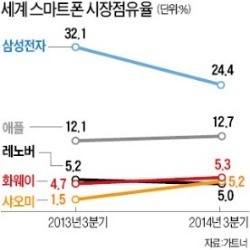 ¿ÃÇØ 3ºÐ±â »þ¿À¹Ì µî Áß±¹ ½º¸¶Æ®Æù¾÷üµéÀÇ ¾àÁøÀÌ µÎµå·¯Á³´Ù. »ï¼ºÀüÀÚ´Â ÆÇ¸Å·®ÀÌ Å©°Ô ÁÙ¾ú°í LGÀüÀÚ´Â 5À§ ¹ÛÀ¸·Î ¹Ð·Á³µ´Ù.