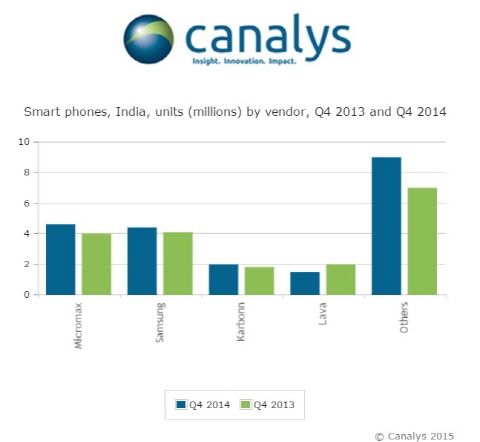 ¡ã 2014³â 4ºÐ±â Àεµ ½º¸¶Æ®Æù ½ÃÀå Á¡À¯À² ÇöȲ(ÃâÇÏ·® ±âÁØ) ¡´ÀÚ·á=Ä«³¯¸®½º¡µ