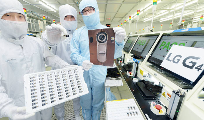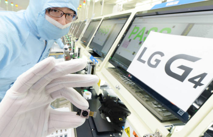 ¡´LGÀüÀÚ Àü·« ½º¸¶Æ®Æù G4ÀÇ Ä«¸Þ¶ó¸ðµâÀ» ¾ç»êÇϰí ÀÖ´Â LGÀ̳ëÅØ ±¤ÁÖ°øÀå. LGÀ̳ëÅØ Á÷¿øµéÀÌ G4ÀÇ Ä«¸Þ¶ó¸ðµâÀ» ¼Ò°³Çϰí ÀÖ´Ù. G4´Â ÇöÁ¸ÇÏ´Â Ä«¸Þ¶ó Áß °¡Àå ³·Àº F 1.8 Á¶¸®°³°ªÀ» °¡Áø 1600¸¸ È¼Ò OIS Ä«¸Þ¶ó ¸ðµâÀ» žÀçÇß´Ù. ¡´»çÁø LGÀüÀÚ Á¦°ø¡µ¡µ