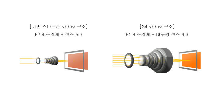 LGÀüÀÚ°¡ ³»¼¼¿ì°í ÀÖ´Â G4 ÃÖ´ë °Á¡ Áß Çϳª´Â Ä«¸Þ¶ó´Ù. G4¿¡ ÀåÂøµÈ ÈĸéÄ«¸Þ¶ó´Â ÇöÁ¸ Ä«¸Þ¶ó Áß °¡Àå ³·Àº F1.8 Á¶¸®°³°ªÀ» ±¸ÇöÇß´Ù. ¼ýÀÚ°¡ ³·À»¼ö·Ï ¼º´ÉÀÌ ¶Ù¾î³ª´Ù. ¾îµÒ ¼Ó¿¡¼µµ ¹àÀº ȸéÀ» ¸¸µé¾î³½´Ù. ±¹³» ÃÖÃÊ·Î Àü¸é 800¸¸ È¼Ò Ä«¸Þ¶ó¸¦ ¹èÄ¡Çß´Ù. ÀÌ´Â 6°³¿ù Àü Ãâ½ÃµÈ ¾ÖÇà ¾ÆÀÌÆù6(Àü¸é 210¸¸ ȼҡ¤F2.2)´Â ¹°·ÐÀ̰í ÀÌ´Þ Ãâ½ÃµÈ »ï¼º °¶·°½ÃS6(Àü¸é 500¸¸ ȼҡ¤F1.9)º¸´Ùµµ ¶Ù¾î³ª´Ù. G4 ÈĸéÄ«¸Þ¶ó´Â 1600¸¸È¼Ò·Î °¶·°½ÃS6¿Í µ¿ÀÏÇÏ´Ù.