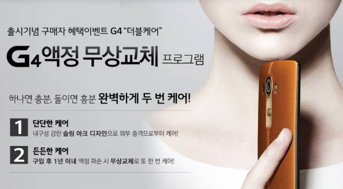 fjrigjwwe9r0UNIMO_MULTIBOARD:Brd_Contents LGÀüÀÚ´Â Àü·« ½º¸¶Æ®Æù ¡®LG G4¡¯ Ãâ½Ã¸¦ ±â³äÇØ 1³â À̳» ¾×Á¤ ÆÄ¼Õ ½Ã ¹«»óÀ¸·Î ¾×Á¤À» ±³È¯ÇØ ÁÖ´Â ¡®´õºí Äɾ ÇÁ·Î±×·¥À» ÁøÇàÇÑ´Ù°í 8ÀÏ ¹àÇû´Ù.