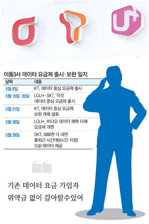 À̵¿Åë½Å 3»ç°¡ Áö³­´Þ µ¥ÀÌÅÍ Á᫐ ¿ä±ÝÁ¦¸¦ Ãâ½ÃÇÏ¸ç °¡ÀÔÀÚ¸¦ ´Ã·Á°¡´Â °¡¿îµ¥ °¢ »ç°¡ °³ÆíÀ» ÅëÇØ º»°ÝÀûÀÎ ¿ä±ÝÁ¦ °æÀïÀ» ¹úÀ̰í ÀÖ´Ù. ½º¸¶Æ®Æù°ú LTE Åë½Å º¸±ÞÀ¸·Î µ¥ÀÌÅÍ ¼Òºñ·®ÀÌ À½¼º ÅëÈ­·®À» ¾ÐµµÇϸ鼭 Á¤ºÎ°¡ À̵¿Åë½Å»ç¿¡ Çö½ÇÀûÀÎ ¿ä±ÝÁ¦¸¦ ¸¸µé¶ó°í Áö¼ÓÀûÀ¸·Î ¿ä±¸ÇؿԴÙ.