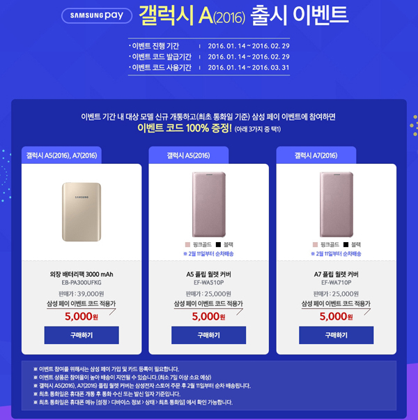 À̺¥Æ® ±â°£ ³» ´ë»ó ¸ðµ¨(SM-A510/A710) ½Å±Ô °³ÅëÇϰí(ÃÖÃÊ ÅëÈ­ÀÏ ±âÁØ) »ï¼º ÆäÀÌ À̺¥Æ®¿¡