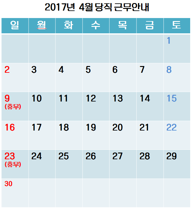 [2017³â 4¿ù ÁÖ¸» ¹× °øÈÞÀÏ ´çÁ÷±Ù¹« ¾È³»]