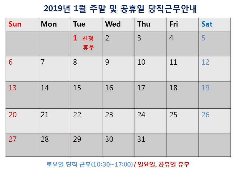 [2019³â 1¿ù ÁÖ¸» ¹× °øÈÞÀÏ ´çÁ÷±Ù¹« ¾È³»]