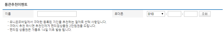 »óǰ±Ç 2¸¸¿øÀ» µå¸³´Ï´Ù. [Âü¿©¹æ¹ý] ÁÖ¹® 2´Ü°è¿¡¼ ÃßõÀÎ À̸§/ÈÞ´ëÆù ¹øÈ£ ÀÔ·Â(±¸¸ÅÀÌ·ÂÀÌ ÀÖÀ¸¸é ÀÚµ¿À¸·Î Á¶È¸°¡ °¡´ÉÇÕ´Ï´Ù) - °³Åë ÈÄ