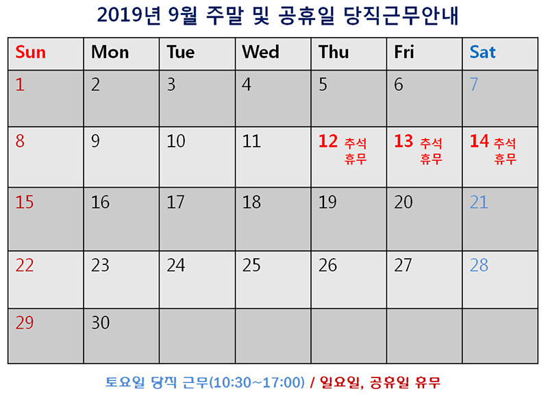 [2019³â 9¿ù ÁÖ¸» ¹× °øÈÞÀÏ ´çÁ÷±Ù¹« ¾È³»]