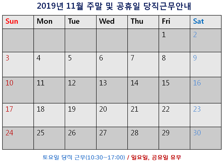 [2019³â 11¿ù ÁÖ¸» ¹× °øÈÞÀÏ ´çÁ÷±Ù¹« ¾È³»]