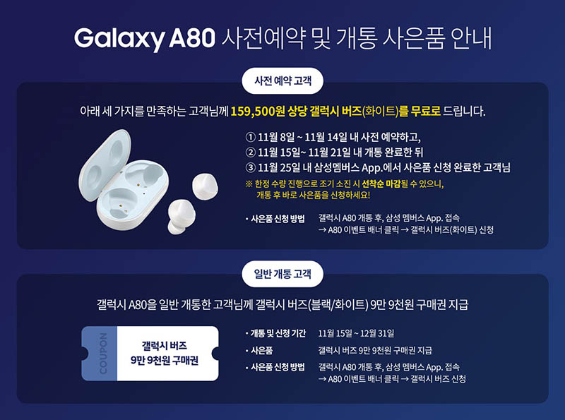 - ¿¹¾à °¡ÀÔ : 11¿ù 8ÀÏ(±Ý)~11¿ù14ÀÏ(¸ñ) - ¿¡¾à °³Åë : 11¿ù 15ÀÏ(±Ý)~11¿ù21ÀÏ(¸ñ) - ¿¹¾à»çÀºÇ° : °¶·°½Ã¹öÁî(¿¹¾à&°³Åë°Ç) - »çÀºÇ°½Åû : °í°´¿¡°Ô »ï¼º URLÆ÷ÇÔµÈ MMS¼ÛºÎ ÈÄ °í°´ Á÷Á¢ ½Åû(11/15(±Ý)~11/21(¸ñ)