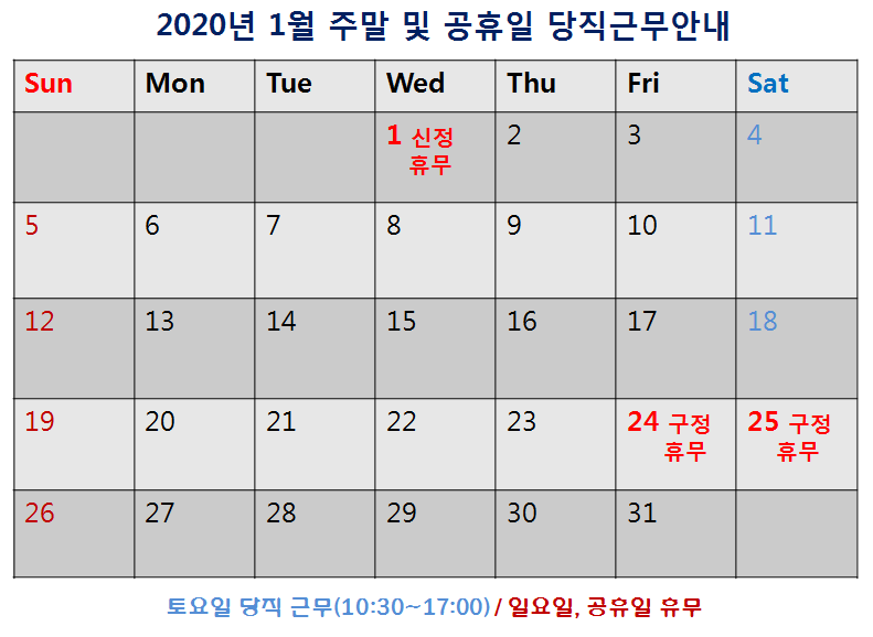 [2020³â 1¿ù ÁÖ¸» ¹× °øÈÞÀÏ ´çÁ÷±Ù¹« ¾È³»]