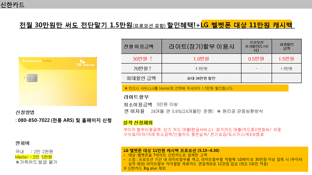 ¡Ø[Çʵ¶] Á¦ÈÞÄ«µå °áÇսà 1. Á¦ÈÞÄ«µå ÇÒÀÎÀº Ä«µå°áÁ¦±Ý¾×¿¡¼ ÀÚµ¿ÇÒÀεǸç, °³ÅëÀϷκÎÅÍ 14ÀÏ À̳»¿¡ Ä«µå»ç¿¡¼ Ä«µå¹ß±Þ ÈÄ ÀúÈñ °í°´¼¾ÅÍ·Î Çʼö·Î µî·Ï ¿äÃ»ÇØ ÁÖ¼Å¾ß µË´Ï´Ù.2. Á¦ÈÞÄ«µå ÇÒÀÎ ÇýÅÃÀº Ä«µåº° Àü¿ù »ç¿ë ½ÇÀû¿¡ µû¶ó ´Ù¸£¸ç, °í°´´ÔÀÇ ÀÌ¿ë½ÇÀû¿¡ µû¶ó ÇÒÀÎ ±Ý¾×Àº ´Þ¶óÁú ¼ö ÀÖ½À´Ï´Ù. (Ç¥½Ã±Ý¾×Àº ÃÖ´ëÇÒÀÎ °¡´É±Ý¾×ÀÓ) 3. ±â±â º¯°æ½Ã ±âÁ¸ Á¦ÈÞÄ«µå ±×´ë·Î ÀÌ¿ëÇϽô °æ¿ì¿¡µµ ÀúÈñ °í°´¼¾ÅÍ·Î Çʼö·Î µî·Ï ¿äÃ»ÇØ ÁÖ¼Å¾ß µË´Ï´Ù.