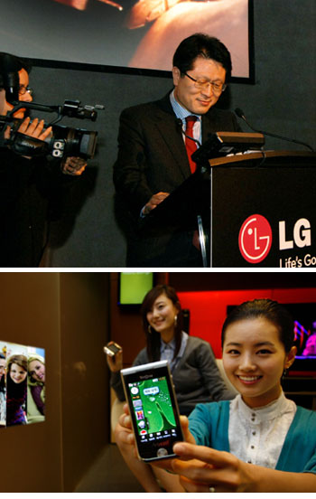 LGÀüÀÚÀÇ ÁÖ·Â Á¦Ç°À¸·Î Â÷¼¼´ë »ç¿ëÀÚ È¯°æ(UI)ÀÎ ¡®SŬ·¡½º UI¡¯¸¦ žÀçÇÑ ¾Æ·¹³ªÆù°ú ŰÆÐµå ºÎºÐÀ» Åõ¸íÇÑ °ÈÀ¯¸®·Î Á¦ÀÛ, ÈÞ´ëÆù µÚÂÊ ¸ð½ÀÀÌ ±×´ë·Î Åõ°úµÇµµ·Ï ÇÑ ¼¼°è ÃÖÃÊ Åõ¸í µðÀÚÀÎ ÄܼÁÆ®ÀÇ ÅÍÄ¡ÆùÀÎ ¡®LG-GD900¡¯µµ °¡Àå ÈÁ¦°¡ µÈ Á¦Ç°ÀÇ Çϳª.LGÀüÀÚ MC¸¶ÄÉÆÃÀü·«ÆÀ ¸¶Ã¢¹Î »ó¹«´Â ¡° ¾Æ·¹³ªÆù¿¡ ´ëÇÑ »ç¾÷ÀÚµéÀÇ °ü½ÉÀÌ ±× ¾î´À¶§º¸´Ù ³ô´Ù¡±¸é¼ ¡°Á¦Ç°¿¡ ´ëÇÑ Âù»ç¿Í ÇÔ²², °ø±Þ ¿äûµµ ¼âµµÇϰí ÀÖ´Ù¡±°í ÀüÇß´Ù. ÇÑÆí À̹ø Àü½Ãȸ¿¡¼ ¼Ò´Ï¿¡¸¯½¼Àº 1200¸¸ ȼҸ¦ Áö¿øÇÏ´Â Ç®ÅÍÄ¡ÆùÀ» °ø°³Çß´Ù. ³ëŰ¾Æ´Â ¾ÖÇø®ÄÉÀÌ¼Ç ½ºÅä¾îÀÎ ¡®¿Àºñ(Ovi)¡¯¿¡ ¿Ã¶ó¿Â ¾ÖÇø®ÄÉÀ̼ÇÀ» ±¸µ¿½Ãų ¼ö ÀÖ´Â Ç®ÅÍÄ¡Æù ¡®N97¡¯À» ¼±º¸¿´´Ù. ¸ðÅä·Î¶ó´Â ¿øÇü ¾×Á¤À» žÀçÇÑ µ¶Æ¯ÇÑ µðÀÚÀÎÀÇ ÇÁ¸®¹Ì¾öÆùÀÎ ¿À¶ó(AURA)¸¦ ³»³õ¾Ò´Ù.