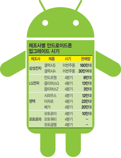 ±¹³» ¾à 300¸¸¸íÀÇ »ç¿ëÀÚ°¡ ÁÖ·Î ¾²´Â ¾Èµå·ÎÀ̵åÆùÀÇ ¿î¿µÃ¼Á¦(OS) ¾÷±×·¹ÀÌµå ½Ã±â°¡ ´ÙÀ½´Þ ¸»·Î ´Ù°¡¿Ô´Ù. ÇöÀç±îÁöµµ ¡®¾÷±×·¹À̵塯 ¾à¼ÓÀ» ÁöŲ Á¦Á¶¾÷ü´Â ¾ÆÁ÷ ´Ü ÇÑ °÷µµ ¾øÁö¸¸ 4ºÐ±â±îÁö´Â ¸¶¹«¸®µÉ °ÍÀ¸·Î º¸ÀδÙ.