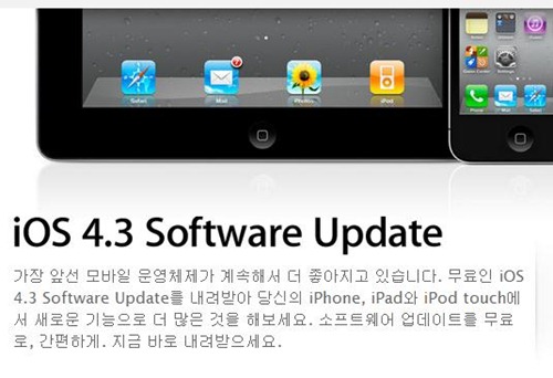 fjrigjwwe9r0UNIMO_MULTIBOARD:Brd_Contents ¾ÖÇÃÀÌ ¿ì¸®½Ã°£À¸·Î 10ÀÏ »õº® iOS 4.3ÀÇ ¾÷µ¥ÀÌÆ®¸¦ ½ÃÀÛÇß´Ù. 11ÀÏ·Î ¿¹»óµÆ´ø ¹èÆ÷ ½ÃÁ¡ÀÌ ´Ù¼Ò »¡¶óÁø °ÍÀÌ´Ù. ¾ÆÀÌÆù°ú ¾ÆÀÌÆÐµå, ¾ÆÀÌÆÌ ÅÍÄ¡ »ç¿ëÀÚ´Â »ç¿ëÇÏ´Â iOS ±â±â¸¦ PC³ª ¸Æ¿¡ ¿¬°áÇÑ ´ÙÀ½ ¾ÆÀÌÆªÁî ȸéÀÇ ¾È³»¸¦ µû¸£¸é ¼Õ½±°Ô ¾÷µ¥ÀÌÆ® ÇÒ ¼ö ÀÖ´Ù.