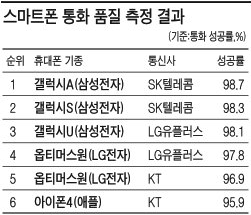KT¸¦ ÅëÇØ Ãâ½ÃµÈ ½º¸¶Æ®ÆùµéÀº »ó´ëÀûÀ¸·Î ÅëÈ­ ¼º°ø·üÀÌ ³·¾Ò´Ù. KT·Î Ãâ½ÃµÈ LGÀüÀÚ ¿ÉƼ¸Ó½º¿øÀº LGÀ¯Ç÷¯½º·Î ³ª¿Â µ¿Àϸ𵨿¡ ºñÇØ ÅëÈ­ ¼º°ø·üÀÌ 1.2%P ³·Àº 96.9%·Î Áý°èµÆ´Ù. ¡®KT-¾ÆÀÌÆù¡¯Àº ÅëÈ­ ¼º°ø·üÀÌ 95.9%·Î °¡Àå ¼º°ø·üÀÌ ³ôÀº ¡®SKÅÚ·¹ÄÞ-°¶·°½ÃA¡¯¿¡ ºñÇØ 2.8%P°¡ ´õ ³·¾Ò´Ù.