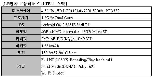 ƯÈ÷ ¡®¿ÉƼ¸Ó½º LTE¡¯´Â ¡®4.5ÀÎÄ¡ IPS-HD(1280¡¿720)¡¯¸¦ äÅÃÇØ ±âÁ¸ ·¹Æ¼³ª µð½ºÇ÷¹ÀÌ(WVGA, 800¡¿480)¿¡ ºñÇØ Ç¥Çö ´É·ÂÀÌ 2.4¹è ³ôÀ» °ÍÀ̶ó°í ÀÌ ºí·Î°Å´Â ÀüÇß´Ù.