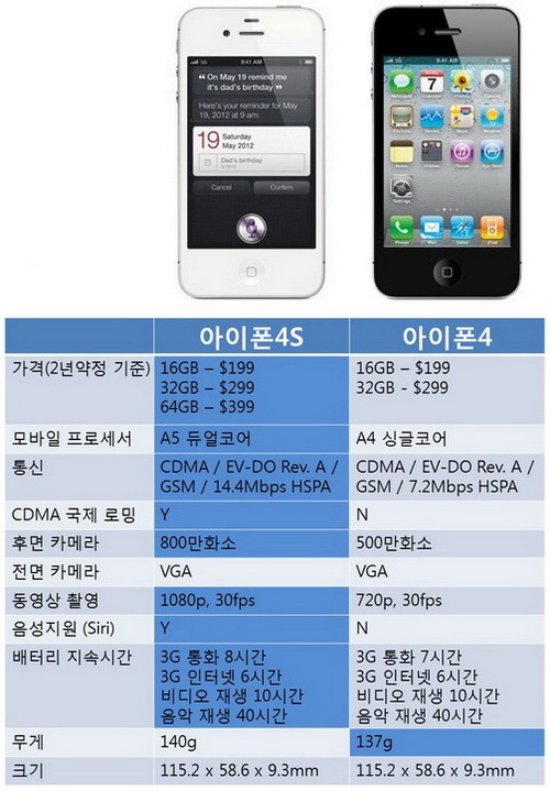 ¾ÆÀÌÆù4S´Â ±âÁ¸ 16GB¿Í 32GB ¿Ü¿¡ 64GB ¿ë·®ÀÇ Á¦Ç°ÀÌ ÇÔ²² ¼±º¸ÀδÙ. °¡°ÝÀº °¢°¢ ¹ÌÈ­·Î 199´Þ·¯, 299´Þ·¯, 399´Þ·¯´Ù. ¾ÆÀÌÆù4S Ãâ½Ã¿Í ÇÔ²² ±âÁ¸ Á¦Ç°ÀÇ °¡°ÝÀÌ ³»·Á°¬´Ù´Â Á¡µµ ¹Ý°¡¿î ¼Ò½ÄÀÌ´Ù. ¾ÆÀÌÆù4´Â 99´Þ·¯, ¾ÆÀÌÆù3GS´Â ¾àÁ¤ °¡ÀÔÀ» ÅëÇØ ¹«·á·Î ±¸ÀÔÇÒ ¼ö ÀÖ´Ù.