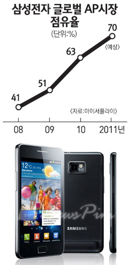 »ï¼ºÀüÀÚ´Â Áö³ 2008³â Á¡À¯À² 41%·Î ±Û·Î¹ú AP½ÃÀå 1À§¿¡ ¿Ã¶ó¼± ÀÌ·¡ ºü¸¥ ¼Óµµ·Î Á¡À¯À²À» ´Ã·Á¿Ô´Ù. 2009³â¿¡´Â Àüü ½ÃÀåÀÇ Àý¹ÝÀÌ ³Ñ´Â 51%¸¦ ±â·ÏÇÑ µ¥ À̾î À۳⿡´Â 63%ÀÇ Á¡À¯À²À» ±â·ÏÇÏ´Â µî ²ÙÁØÇÑ ¼ºÀå¼¼¸¦ À̾°í ÀÖ´Ù. ƯÈ÷ »ï¼ºÀüÀÚ £§°¶·°½Ã£§ ½Ã¸®Áî¿Í ¾ÖÇà £§¾ÆÀÌÆù£§ÀÇ ÆÇ¸Å·®ÀÌ ±ÞÁõÇÑ °ÍÀÌ »ï¼ºÀüÀÚÀÇ ¼ºÀå¼¼¸¦ ÁÖµµÇÑ °ÍÀ¸·Î Ç®À̵ȴÙ. »ï¼ºÀüÀÚ´Â ÀÚü AP ºê·£µåÀÎ £§¿¢½Ã³ë½º£§¸¦ »ý»êÇÏ´Â ÇÑÆí ¾ÖÇÿ¡µµ ¾ÆÀÌÆù°ú ¾ÆÀÌÆÐµå¿¡ žÀçµÇ´Â £§A4£§¿Í £§A5£§ µîÀ» Àü·® »ý»êÀ» À§Å¹¹Þ¾Æ µ¶Á¡ °ø±ÞÇϰí ÀÖ´Ù.