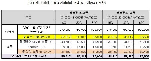 »õ ¾ÆÀÌÆÐµå, SKT-KT Á¦ÀÏ ½Ñ ¿ä±ÝÁ¦´Â?