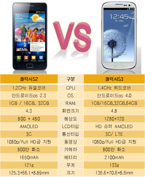 ½ÇÁ¦ ²Ä²ÄÈ÷ µé¿©´Ùº¸¸é °¶·°½ÃS2¿¡ ºñÇØ °¶·°½ÃS3°¡ °¡Á®¿Â º¯È­´Â Å©´Ù. CPU¸¦ ºñ·ÔÇØ È­¸éÅ©±â°¡ 4.8ÀÎÄ¡·Î Ä¿Áö°í ÇØ»óµµ´Â 1280*720À¸·Î À¥¼­ÇÎÀ» ÇÒ °æ¿ì ÀüÀÛ°úÀÇ Â÷À̸¦ È®½ÇÈ÷ ´À³¥ ¼ö ÀÖ´Ù. 3G¹öÀü°ú LTE¹öÀüÀ» µ¿½Ã¿¡ Ãâ½ÃÇØ ¼ÒºñÀÚÀÇ ¼±ÅñÇÀ» È®´ëÇÑ Á¡µµ Â÷º°Á¡ÀÌ´Ù. 60MbpsÀÇ ¼Óµµ·Î LTE¸ÁÀ» ÀÌ¿ëÇÒ ¼ö ÀÖ°í Ä¿Áø È­¸é¸¸Å­À̳ª ¹èÅ͸® ¿ë·®µµ 2100mAh·Î ´Ã¾î³­ Á¡µµ ¼ÒºñÀڵ鿡°Ô ¾îÇÊÇϰí ÀÖ´Ù.