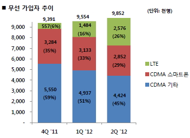 ºü¸£°Ô ´Ã¾î³­ LTE °¡ÀÔÀÚ´Â ARPU(°¡ÀÔÀÚ´ç¸ÅÃâ¾×) »ó½ÂÀ¸·Î À̾îÁ³´Ù. LTE °¡ÀÔÀÚÀÇ ARPU´Â Åë»ó ÇÇÃÄÆù(ÀÏ¹ÝÆù) °¡ÀÔÀÚº¸´Ù 3¹è °¡±îÀÌ ³ô´Ù.