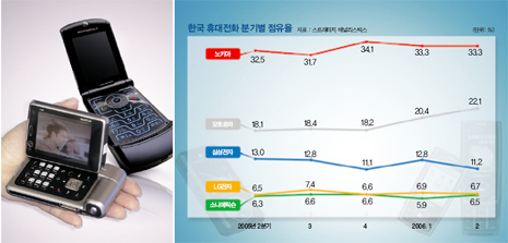 Ç¥¸éÀûÀ¸·Î´Â ¼¼°è ÈÞ´ëÀüÈ­ ½ÃÀå¿¡¼­ ³ëŰ¾Æ¿Í ¸ðÅä·Î¶ó°¡ ´ë¾àÁøÇϰí ÀÖ´Â ¹Ý¸é, ±¹³» ¾÷üµéÀº °¥¼ö·Ï µÚóÁö´Â ¾ç»óÀÌ Àü°³µÇ°í ÀÖ´Ù. ³ëŰ¾Æ´Â Àú°¡ÆùÀ» ¾Õ¼¼¿ö Àεµ µî ½ÅÈï½ÃÀåÀ» Àá½ÄÇØ µé¾î°¡°í ÀÖ°í, ¿¹Àü¿¡ °íÀüÀ» ¸éÄ¡ ¸øÇÏ´ø ¸ðÅä·Î¶ó ¿ª½Ã 2004³â¿¡ ³»³õÀº ¡®·¹ÀÌÀú¡¯ÆùÀ¸·Î µ¹Ç³À» ÀÏÀ¸Å°°í ÀÖ´Ù. ¸ðÅä·Î¶ó´Â ¿Ã 2ºÐ±â »ç»ó ÃÖ°í ¼öÁØÀÎ 5190¸¸ ´ëÀÇ ÈÞ´ëÀüÈ­¸¦ ÆÇ¸ÅÇß´Ù. 1³â Àü¿¡ ºñÇØ ÃâÇÏ ´ë¼ö°¡ ¹«·Á 53%³ª Áõ°¡Çϸ鼭 ¸ðÅä·Î¶óÀÇ ½ÃÀåÁ¡À¯À²Àº 17%¿¡¼­ 22%·Î ¼öÁ÷ »ó½ÂÇß´Ù. ³ëŰ¾Æ´Â 2ºÐ±â¿¡ ÈÞ´ëÀüÈ­ ºÎ¹®¿¡¼­¸¸ ¸ÅÃâÀÌ 21%³ª ±ÞÁõÇß°í ¿µ¾÷ÀÌÀÍ·üµµ 16.7%¿¡ ´ÞÇß´Ù.
