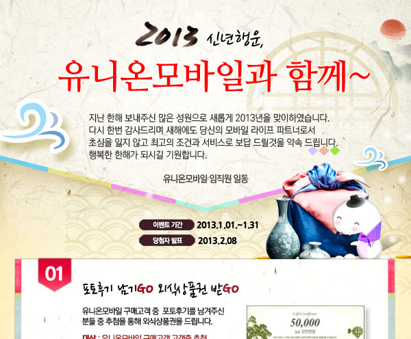 [1¿ù À̺¥Æ® °øÁö] 2013 ½Å³âÇà¿î, À¯´Ï¿Â¸ð¹ÙÀϰú ÇÔ²²~
