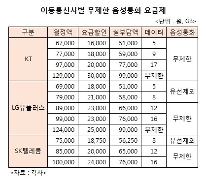 A¾¾ÀÇ °æ¿ì¶ó¸é ¹«Á¦ÇÑ ÅëÈ­ ¿ä±ÝÁ¦·Î °¥¾ÆÅ¸´Â °Ô ¼ÕÇØ´Ù. Àڻ硤Ÿ»ç °¡ÀÔÀÚ¿Í ¹«Á¦ÇÑ ÅëÈ­(¹«¼± ±âÁØ)¸¦ ÇÒ ¼ö ÀÖ´Â ¿ä±ÝÁ¦´Â SKÅÚ·¹ÄÞ 7¸¸5000¿ø, KT 6¸¸7000¿ø, LGÀ¯Ç÷¯½º 6¸¸9000¿ø(ºÎ°¡¼¼ º°µµ)ºÎÅÍ ÀÖ´Ù. Áö±Ý º¸´Ù ÇÑ´Þ 2¸¸¿ø ÀÌ»ó ´õ ³»¾ßÇÑ´Ù´Â ¾ê±â´Ù.