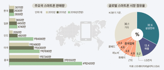 ¡¡±×·¯³ª Áß±¹¡¤¹Ì±¹¡¤Àεµ¡¤ÀϺ» µî ÁÖ¿ä±¹ÀÇ ½º¸¶Æ®Æù ½ÃÀåÀº ±¹³»¿Í ´Þ¸® °è¼Ó ¼ºÀå¼¼¸¦ À̾ Àü¸ÁÀÌ´Ù. SA¿¡ µû¸£¸é ƯÈ÷ Áß±¹ÀÇ ½º¸¶Æ®Æù ½ÃÀåÀº Áö³­ÇØ 1¾ï7340¸¸ ´ë ±Ô¸ð¿¡¼­ ¿ÃÇØ 3¾ï1550¸¸ ´ë·Î µÎ ¹è·Î Ä¿Áö°í, 2018³â¿¡´Â 4¾ï2420¸¸ ´ë ±Ô¸ð°¡ µÉ °ÍÀ¸·Î º¸ÀδÙ.