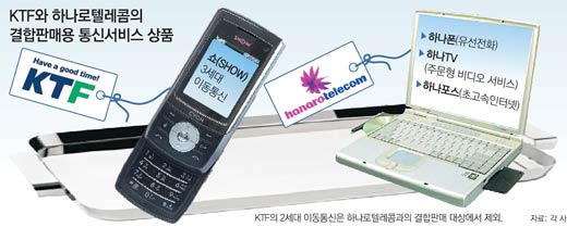 ¡®3G À̵¿Åë½Å 1À§ ´Þ¼º¡¯ÀÌ ¸ñÇ¥ÀÎ KTF´Â Çϳª·ÎÅÚ·¹ÄÞ°ú ¿¬ÇÕÇØ 3G °¡ÀÔÀÚ ¹× ½ÃÀå È®´ë¸¦ Å©°Ô ¾Õ´ç±æ ¼ö ÀÖ´Ù´Â °è»êÀÌ´Ù. ¶Ç ¡°¸ðȸ»çÀÎ KT°¡ ÀÚȸ»ç KTFÀÇ »óǰÀ» ÀçÆÇ¸ÅÇÏ´Â °ÍÀº ºÎ´ç Áö¿ø¡±À̶ó´Â SKÅÚ·¹ÄÞ°ú LGÅÚ·¹ÄÞÀÇ ÁÖÀåµµ ¡®Á¦3ÀÚ¡¯ÀÎ Çϳª·ÎÅÚ·¹ÄÞÀÌ ÀçÆÇ¸Å¿¡ Âü¿©ÇÔÀ¸·Î½á Èñ¼®µÉ ¼ÒÁö°¡ Å©´Ù.
