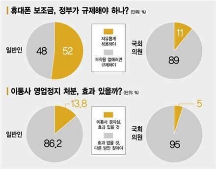 ¾Æ½Ã¾Æ°æÁ¦½Å¹®Àº ÀÏ¹Ý ¼ÒºñÀÚµé°ú ±¹È¸ ¹Ì·¡Ã¢Á¶°úÇйæ¼ÛÅë½ÅÀ§¿øÈ¸(¹Ì¹æÀ§) ¼Ò¼Ó ÀÇ¿øµéÀ» ´ë»óÀ¸·Î ¼³¹®Á¶»ç¸¦ ½Ç½ÃÇß´Ù. ¼³¹® °á°ú ´ëÁßµé°ú ±¹È¸ÀÇ¿øµéÀÇ ½Ã°¢Â÷°¡ °¡Àå ¾ù°¥¸° ºÎºÐÀº º¸Á¶±ÝÀÇ ±ÔÁ¦ ¿©ºÎ¿´´Ù. Àý¹Ý ÀÌ»óÀÇ ¼ÒºñÀÚµéÀÌ £¢ÈÞ´ëÆùÀ» ½Î°Ô »ì ¼ö ÀÖÀ¸¹Ç·Î º¸Á¶±ÝÀ» ÀÚÀ¯·Ó°Ô Çã¿ëÇØ¾ß ÇÑ´Ù£¢°í ´äÇÑ ¹Ý¸é, Á¤Ã¥ÀÔ¾ÈÀÚÀÎ ±¹È¸ÀÇ¿øµéÀº ¿©¾ß ´ë´Ù¼ö°¡ £¢º¸Á¶±ÝÀ» ±ÔÁ¦ÇØ¾ß ÇÑ´Ù£¢°í ´äº¯Çß´Ù.