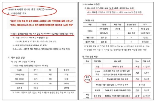 ½ÃÀå°¨½Ã´Ü¿ø¿¡°Ô´Â ÆäÀ̹é(Çö±Ý Á¦°ø), ºÎ´ç ÇÒÀÎ, ÀÜ¿© ÇÒºÎ±Ý ´ë³³, Ä«µå»ç Æ÷ÀÎÆ®·Î Áö¿ø±Ý Áö±ÞÀ» Æ÷ÇÔÇØ 27¸¸¿øÀ» ÃʰúÇØ º¸Á¶±ÝÀ» Áö±ÞÇϰųª ¿µ¾÷Á¤Áö ±â°£ Áß ¿¹¾à°¡ÀÔÀ» ¹Þ´Â ÇàÀ§ Àû¹ß, °æÀï¾÷üÀÇ ÁÖ¿ä ÆÇ¸ÅÁ¤Ã¥ ¹× ´Ü¸»±â ´Ü°¡Ç¥ ¼öÁý, °æÀï¾÷ü ¿µ¾÷µ¿Çâ ÆÄ¾Ç µîÀÇ ¡®ÀÓ¹«¡¯°¡ ÁÖ¾îÁ³´Ù. °æÀï¾÷ü ´ë¸®Á¡À» Á÷Á¢ ¹æ¹®ÇØ ½ÇÁ¦·Î °¡ÀÔÇϸ鼭 »ó´ã ³»¿ëÀ» ³ìÀ½Çϰí, ºÒ¹ý ¿µ¾÷ ³»¿ëÀÌ ´ã±ä ½Åû¼­¿Í ´Ü°¡Ç¥ °°Àº °ÍÀ» ì±â¶ó´Â ¼¼ºÎ Áöħ±îÁö ³»·ÁÁ³´Ù. ¿µ¾÷Ȱµ¿ µîÀº »çÁøÀ» ÂïÀ¸¶ó°í Çß´Ù. ºÒ¹ý ÇàÀ§ Áõ°Å ¼öÁý ½ÇÀû, ¼öÁýµÈ Áõ°Å¿¡ Æ÷ÇÔµÈ ºÒ¹ý ÇàÀ§ÀÇ °æÁß µî¿¡ µû¶ó Àμ¾Æ¼ºê°¡ Â÷µî Áö±ÞµÈ´Ù.