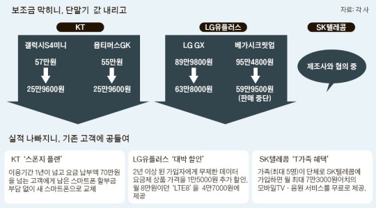 À̵¿Åë½Å 3»çÀÇ ¿µ¾÷Àü·«ÀÌ ¹Ù²î°í ÀÖ´Ù. °æÀï¾÷üÀÇ °¡ÀÔÀÚ¸¦ »©¾Ñ±â À§ÇØ º¸Á¶±ÝÀ» »Ñ¸®´ø Á¤Ã¥ÀÌ ¸·È÷ÀÚ ´Ü¸»±â °¡°ÝÀ» ³»¸®°í, Àå±â °í°´ÀÇ ¼­ºñ½º¸¦ °­È­ÇÏ´Â ¡®ÅõÆ®·¢¡¯ Àü·«À» ÆîÄ¡°í ÀÖ´Ù. Á¤ºÎÀÇ ºÒ¹ý º¸Á¶±Ý Á¦Àç ¡®Ä®³¯¡¯À» ÇÇÇϰí, °æ¿µ ³»½Çµµ ´ÙÁö´Â ¡®¾ç¼ö°âÀ塯ÀÇ È¿°ú¸¦ ³ë¸° °ÍÀ¸·Î ºÐ¼®µÈ´Ù.