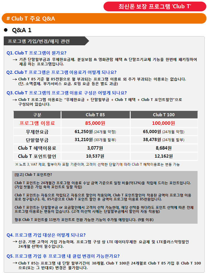 SKT Æò»ý Ãֽůù º¸Àå ÇÁ·Î±×·¥, Club T¶õ? ======================================================== 2014³â 11¿ù 10ÀÏ ³»¿ëº¯°æ * ºÐ½Çº¸Çè,¿µÈ ¹«·áÁ¦°ø ÆóÁö * ´Ü¸»±âº° °ø½ÃÁö¿ø±Ý ¼öÁØÀÇ Å¬·´T Æ÷ÀÎÆ® Á¦°øÀ¸·Î º¯°æµÊ. ======================================================= SKÅÚ·¹ÄÞ °í°´À̶ó¸é Æò»ý Ãֽůù º¸Àå ÇýÅà ¹ÞÀ¸¼¼¿ä! ÃֽŠÈÞ´ëÆù + ¹«Á¦ÇÑ ¿ä±ÝÁ¦ + Club T ÇýÅÃÀ» ÆÄ°ÝÀûÀÎ °¡°Ý¿¡ ¸¸³ªº¸¼¼¿ä! Ŭ·´T ½ºÅÄ´Ùµå,ÇÁ¸®¹Ì¾ö ¿ä±ÝÁ¦ »ç¿ëÁ¶°ÇÀ¸·Î ´Ü¸»±â ÇҺαݰú µ¥ÀÌÅÍ ¹«Á¦ÇÑ ¿ä±ÝÁ¦, ´Ü¸»±â Á¶±â ±³Ã¼ ÇýÅÃÀ» ¸ðµÎ Á¦°øÇÏ´Â ÇÁ·Î±×·¥ (1)1³â ¸¶´Ù ÃֽŠÈÞ´ëÆùÀ¸·Î ±³Ã¼! ÀÜ¿© ÇÒºÎ±Ý °ÆÁ¤ ³¡! 1.Ãâ°í°¡ 100¸¸¿ø ÀÌÇÏ ¾î¶² ÈÞ´ëÆùÀ̵ç! 2.Club T 85´Â 1³â 6°³¿ù¸¶´Ù Club T 100Àº ¸Å³â ´Ü¸» ±³Ã¼ °¡´É! 3.´Ü¸»±³Ã¼ Àü±îÁö(ÃÖÀå24°³¿ù) ºÐ½Çº¸Çè ÇýÅà Á¦°ø! (´Ü, Club T 85´Â 18°³¿ù°£ Á¦°ø) (2)À½¼º,µ¥ÀÌÅÍ ¹«Á¦ÇÑÀÌ´Ï±î ¾Æ¹«¸® ¸¹ÀÌ ½áµµ ¿ä±Ý °ÆÁ¤ ³¡! 1.Club T 85 : µ¥ÀÌÅÍ ¹«Á¦ÇÑ 61 Á¦°ø(LTEÀü±¹¹Î¹«ÇÑ75 + 24°³¿ù ¾àÁ¤ + ¾È½É¿É¼Ç) Àü±¹¹Î À½¼ºÅëÈ / ¹®ÀÚ / µ¥ÀÌÅÍ ¹«Á¦ÇÑ(¿ù8GB+ÀÏ2GB QoS)+Btv ¸ð¹ÙÀÏ 2.Club T 100 : µ¥ÀÌÅÍ ¹«Á¦ÇÑ 65 Á¦°ø(LTEÀü±¹¹Î¹«ÇÑ85 + 24°³¿ù ¾àÁ¤) Àü±¹¹Î À½¼ºÅëÈ / ¹®ÀÚ / µ¥ÀÌÅÍ ¹«Á¦ÇÑ(¿ù12GB+ÀÏ2GB QoS)+Btv¸ð¹ÙÀÏ/¸á·Ð¸ð¹ÙÀϽºÆ®¸®¹Ö/¸¶À̽º¸¶Æ®ÄÝ (3)´Ü¸»±â ¹Ì±³Ã¼ ½Ã Ãß°¡ ÇÒÀÎ!(VATº°µµ) 1.Club T 85 : (~18°³¿ù) 85õ¿ø (19°³¿ù~30°³¿ù, ´Ü¸»¹Ì±³Ã¼ ½Ã) 75õ¿ø (31°³¿ù~, ´Ü¸»¹Ì±³Ã¼ ½Ã) 65õ¿ø 2.Club T 100 : (~12°³¿ù) 100õ¿ø (13°³¿ù~24°³¿ù, ´Ü¸»¹Ì±³Ã¼ ½Ã) 85õ¿ø (25°³¿ù~, ´Ü¸»¹Ì±³Ã¼ ½Ã) 70õ¿ø (4)¸Å³â Á¦°øµÇ´Â ¿µÈ°ü¶÷ ÇýÅÃ! 1.Club T 85 : ¸Å³â 4Àå Á¦°ø(°¡ÀÔ ÀÍ¿ù ÃÖÃÊ Á¦°ø ÈÄ 3°³¿ù ÁÖ±â·Î Á¦°ø) 2.Club T 100 : ¸Å³â 10Àå Á¦°ø(°¡ÀÔ ÀÍ¿ù ÃÖÃÊ Á¦°ø ÈÄ 1°³¿ù ÁÖ±â·Î Á¦°ø) ¡Ø Club T ¿¡¼ Á¦°øµÇ´Â ¿µÈ°ü¶÷ ÇýÅÃÀº ¸â¹ö½Ê ÇýÅðú´Â º°µµ·Î Ãß°¡ Á¦°øµÇ¸ç, ¿Â¶óÀÎ/¸ð¹ÙÀÏ ¸â¹ö½Ê »çÀÌÆ®¿¡¼ »ç¿ë °¡´É (8¿ù°¡ÀÔÀÚ´Â 10¿ùºÎÅÍ Á¦°ø ¿¹Á¤) ** °¡ÀÔÁ¶°Ç! Çʼö À¯ÀÇ»çÇ×!! ¡°´Ü¸»±â ÇҺαⰣÀº Club T 85´Â 30°³¿ù / Club T 100Àº 24°³¿ùÀ̸ç, ¾àÁ¤Àº µ¿ÀÏÇÏ°Ô 24°³¿ù ÀÔ´Ï´Ù.¡± ¡°ÇÁ·Î±×·¥Àº Club T 85 ¡ê Club T 100 »óÇâ/ÇÏÇâÀÌ ºÒ°¡ÇÕ´Ï´Ù.¡± ¡°Àû¿ë ¿ä±ÝÁ¦ º¯°æ ½Ã ÇÁ·Î±×·¥ ÇýÅà Àû¿ëÀÌ µÇÁö ¾Ê½À´Ï´Ù.¡± ÀÚ¼¼ÇÑ »çÇ×Àº ¾Æ·¡ À̹ÌÁö¸¦ Ŭ¸¯ÇϽøé È®´ëÇØ¼ º¸½Ç¼ö ÀÖ½À´Ï´Ù. °¨»çÇÕ´Ï´Ù. ![]() ![]() ![]() |