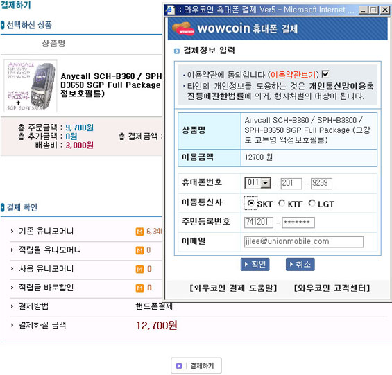 3. WOWCOIN ÈÞ´ëÆù °áÁ¦ âÀÌ ¶ß¸é ÁøÇàÇÏ½Ã¸é µË´Ï´Ù.