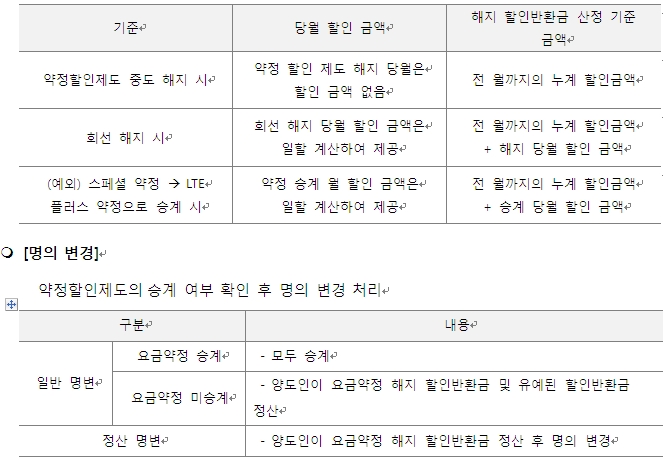 ¡Ý ½ºÆä¼È ¾àÁ¤ÇÒÀÎÁ¦µµ °¡ÀÔ °í°´ÀÌ LTE Ç÷¯½º ¾àÁ¤ÇÒÀÎÁ¦µµ·Î º¯°æÇÒ °æ¿ì, ½ºÆä¼È ¾àÁ¤ÀÇ ÇØÁö ÇÒÀιÝȯ±Ý ºÎ°ú À¯¿¹ (¾àÁ¤ ½Â°è ÈÄ, ½ºÆä¼È ¾àÁ¤ ÀÜ¿©±â°£ µ¿¾È LTE Ç÷¯½º ¾àÁ¤ ÀÌ¿ë ½Ã ÇÒÀιÝȯ±Ý ¼Ò¸ê) - ½ºÆä¼È ¾àÁ¤ 24°³¿ù ¾àÁ¤ °í°´ÀÌ 18°³¿ù ÀÌ¿ë ÈÄ LTE·Î º¯°æ ½Ã, 6°³¿ù°£ LTE Ç÷¯½º ¾àÁ¤ Ãß°¡ »ç¿ë½Ã ½ºÆä¼È ¾àÁ¤ÀÇ ÇØÁö ÇÒÀιÝȯ±ÝÀº ¼Ò¸ê - ¾àÁ¤ÇÒÀÎÁ¦µµ ½Â°è ½Ã °¡ÀÔ °¡´É ¾àÁ¤ÇÒÀÎÁ¦µµ´Â ÀÌÀü ÇÒÀÎ Á¦µµÀÇ ¾àÁ¤ ±â°£¿¡ µû¶ó ´Ù¸§ ![]() ¡Ø SKT ¾àÁ¤ÇÒÀÎÁ¦µµ °øÅë »çÇ× [°¡ÀÔ Á¶°Ç]¡°È¸¼± & ¿ä±ÝÁ¦¸¦ ¾àÁ¤ ±â°£ µ¿¾È ÀÌ¿ë ½Ã °¡ÀÔ °¡´É¡± - ´Ü¸» ÇҺΠ±¸¸Å(½Å±Ô/±âº¯) ¿©ºÎ, TÇÒºÎÁö¿ø or T±âº»¾àÁ¤ °¡ÀÔ ¿©ºÎ ¸ðµÎ »ó°ü ¾øÀ½ - °¡ÀÔ °¡´É ´Ü¸» : ÇÇóÆù, ½º¸¶Æ®Æù - °¡ÀÔ ºÒ°¡ ´Ü¸» : PDA, ¸ðµ©, Ư¼ö´Ü¸», ¼±ºÒ, ÅÃ½ÃÆù µî [ÇÒÀÎ ´ë»óÀÚ ¼±Á¤] - ¾àÁ¤ÇÒÀÎÁ¦µµ ¡®¿ù¸»¡¯ ±îÁö À¯Áö ½Ã ÇÒÀÎ ÇýÅà Á¦°ø ´Ü, ȸ¼±ÀÇ ÇØÁö ¹× ¾àÁ¤ ½Â°è½Ã¿¡´Â ó¸® ´ç¿ù ÇÒÀξ×Àº ÀÏÇÒ °è»êÇÏ¿© Áö±Þ ![]() [¿ä±Ý¾àÁ¤ÇÒÀÎÁ¦µµ °¡ÀÔ °í°´ÀÇ ¿ù 1ȸ ÀÌ»ó ¿ä±ÝÁ¦ º¯°æ Á¦ÇÑ °È] - ¿ä±Ý¾àÁ¤ÇÒÀÎÁ¦µµ °¡ÀÔ °í°´Àº ¡®¿ù 1ȸ ÀÌ»ó ¿ä±ÝÁ¦ º¯°æ ±ÇÇÑ¡¯ À¸·Î °Á¦ ¿ä±ÝÁ¦ º¯°æ ºÒ°¡. ´Ü, ¿ä±ÝÁ¦ º¯°æ ´çÀÏ¿¡ ÇÑÇØ 1ȸ ÀÌ»ó º¯°æ °¡´É (ÇöÇà°ú µ¿ÀÏ) [ÇÒÀÎÁ¦µµ °£ Áߺ¹ °¡ÀÔ Á¶°Ç] - Áߺ¹ °¡ÀÔ ºÒ°¡´ÉÇÑ ÇÒÀÎÁ¦µµ ÀÌ¿ë °í°´ÀÌ ¡®¿ä±Ý¾àÁ¤ ÇÒÀÎÁ¦µµ¡¯ °¡ÀÔ ½Åû ½Ã, ±âÁ¸ ÇÒÀÎÁ¦µµÀÇ ¼± ÇØÁö ÈÄ °¡ÀÔ Ã³¸® ÇÊ¿ä ![]() - ¾àÁ¤ÇÒÀÎÁ¦µµ °¡ÀÔ ±â°£ Áß ·¹Àκ¸¿ì Æ÷ÀÎÆ® ¹× Åõ°ÔÀû Æ÷ÀÎÆ® Àû¸³ ºÒ°¡ - ¾àÁ¤ÇÒÀÎÁ¦µµ °¡ÀÔ ±â°£Àº ¿Â°¡Á·ÇÒÀÎ ¹× Àå±â°¡ÀÔÇÒÀÎÀÇ °¡ÀÔ³â¼ö ¹Ì»êÁ¤ ¿¹) ½ºÆä¼È ¾àÁ¤ 24°³¿ù ÀÌ¿ë °í°´ÀÌ ÇâÈÄ Àå±â°¡ÀÔÇÒÀÎ ´ë»óÀÚ·Î ¼±Á¤µÉ °æ¿ì, ¾àÁ¤ ÀÌ¿ë±â°£(24°³¿ù)Àº Á¦¿ÜÇϰí Àå±âÇÒÀÎ Á¦°øÀ» À§ÇÑ °¡ÀÔ³â¼ö »êÁ¤ [º¹ÁöÇÒÀÎ Àû¿ë ¼ø¼] ±âÁ¸ ÇÒÀÎÁ¦µµ(½ºÆä¼È/´õºí/LTEÇ÷¯½º)¿Í µ¿ÀÏ ¼ø¼ & Rule Àû¿ë - Àå¾ÖÀÎ & ±¹°¡À¯°øÀÚ : ¾àÁ¤ÇÒÀÎÁ¦µµ Àû¿ë ÈÄ º¹ÁöÇÒÀÎ Àû¿ë - ±âÃÊ»ýȰ¼ö±ÞÀÚ & Â÷»óÀ§ : º¹ÁöÇÒÀÎ Àû¿ë ÈÄ ¾àÁ¤ÇÒÀÎÁ¦µµ Àû¿ë °¡.¾àÁ¤ ±â°£ ¹× ÇýÅà ¼Ò±Þ Àû¿ë [¾àÁ¤ ½ÃÀÛÀÏ ¹× ÃÑ ¾àÁ¤ ±â°£] - ÃÑ ¾àÁ¤ ±â°£Àº, ¾àÁ¤ ½ÃÀÛÀϷκÎÅÍ ÀÏÇÒÇÏ¿© »êÁ¤ [1³â ¾àÁ¤] 365ÀÏ °£ / [2³â ¾àÁ¤] 730ÀÏ °£ [¾àÁ¤ ±â°£ ¸¸·á ½Ã ÀÚµ¿ ÇØÁö] - ¾àÁ¤ ±â°£ ¸¸·á½Ã, ¸¸·á ÈÄ ÀÍ¿ù 1ÀÏ¿¡ ÀÚµ¿ ÇØÁö ¿¹. 5¿ù 4ÀÏÀÌ ¾àÁ¤ ¸¸·áÀÏÀÎ °æ¿ì, 6¿ù 1ÀÏ 0½Ã¿¡ ÀÚµ¿ÇØÁö |