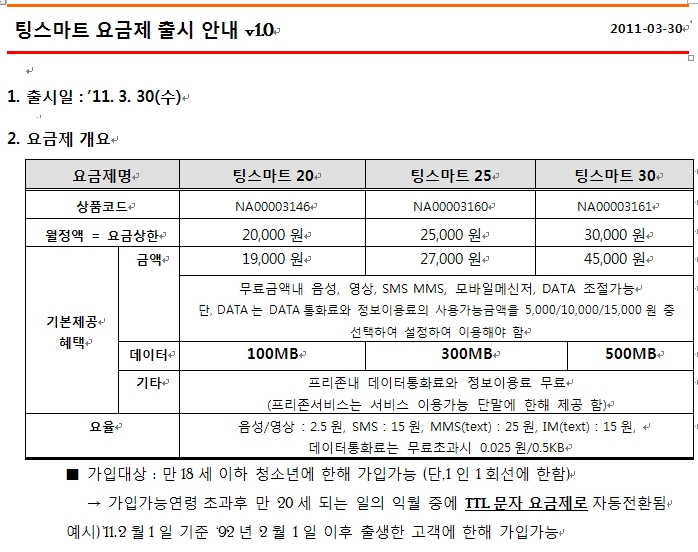 SKT û¼Ò³â ¿ä±ÝÁ¦ ÆÃ½º¸¶Æ® 20, 25 ,30ÀÌ Ãâ½Ã µÇ¾ú½À´Ï´Ù.